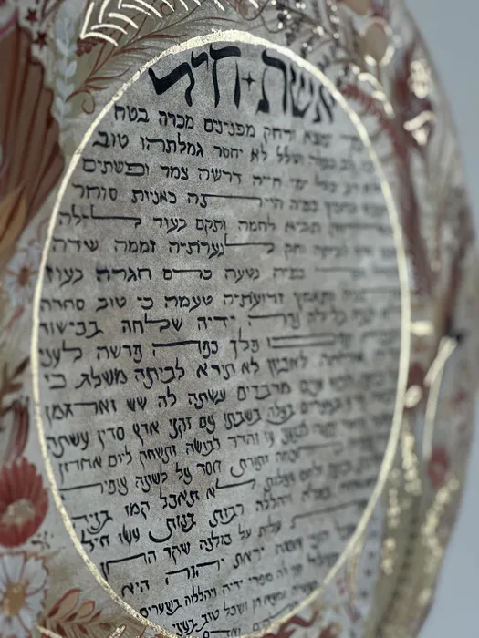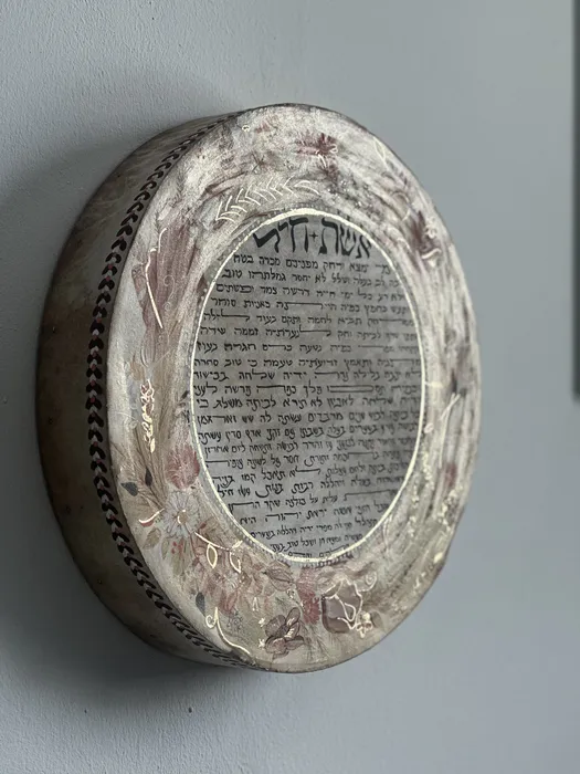 אשת חיל מוזהב על תוף מעור ענק