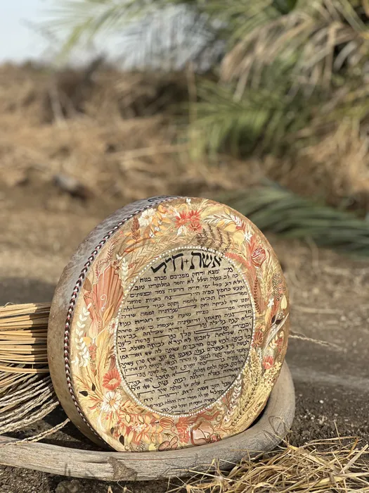 ברכת "אשת חיל" על תוף ענק בגודל 41 ס"מ.