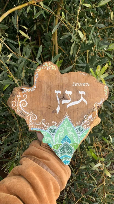 שלט לדלת בעיצוב אישי על עץ זית מהמם