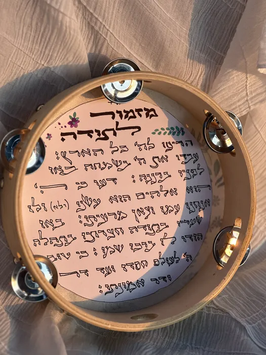 מאחורי התוף כתוב בכתב יד על דף עמיד "מזמור לתודה".