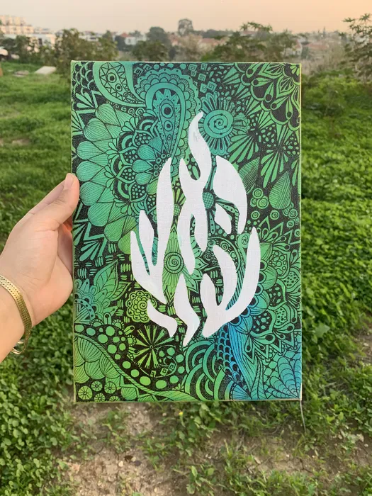 "האש שלי" על רקע מרהיב בגווני ירוק עם עיטורים של מנדלות מסוגננות