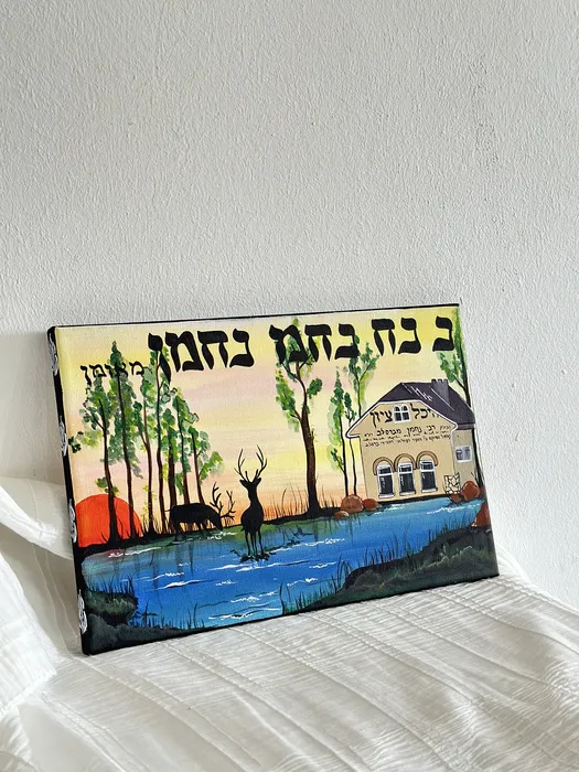 הציור נעשה בעבודת יד. בהזמנה חדשה ניתן לבקש לשנות גודל, צבעים או משפט לבחירתכם.