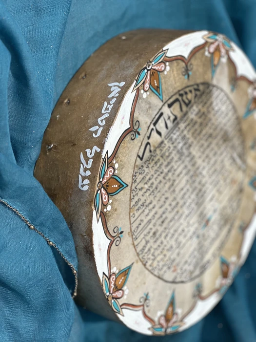 ברכת אשת חיל על תוף עשוי עור אמיתי בקוטר 28 ס"מ