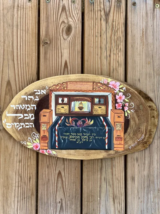 ציור ציון רבי נחמן מברסלב על עץ זית טבעי ויפה באורך 30 ס"מ